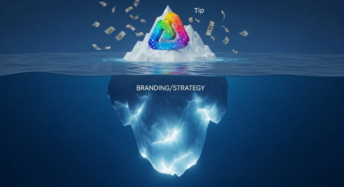 اگه بدنه زیر آب (استراتژی) وجود نداشته باشه یا ضعیف باشه، اون نوک قله زیبا (لوگو) ثباتی نخواهد داشت و با اولین موج بازار واژگون می‌شه.
