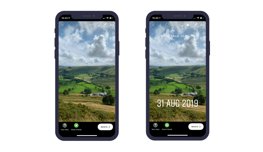 میتونید بیش از یه استیکر به یه استوری اضافه کنید. برای اضافه کردن استیکر، یه عکس یا ویدیو بگیرید یا آپلود کنید و بعد روی دکمه استیکرها (یه صورت خندون بالای صفحه) ضربه بزنید تا استیکرهای قابل شخصیسازی برای آب و هوا، زمان فعلی، لوکیشن و غیره رو پیدا کنید.