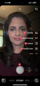 ۲. انتخاب کنید چطور استوریتون رو اضافه کنید: روی دایره سفید ضربه بزنید تا محتوا تولید کنید، یا روی آیکون آلبوم ضربه بزنید تا از گالریتون آپلود کنید.