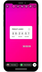 اگه میخواید برای یه لانچ محصول یا رویداد هیجان ایجاد کنید، استیکر شمارش معکوس رو بگنجونید تا اونا بتونن سریع ضربه بزنن تا یه یادآور برای تاریخ دریافت کنن.