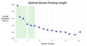 اگه استوریهای طولانیتری بذارید، ریزش خیلی بد نیست. هنوزم میتونید نرخ تکمیل بالای ۵۰٪ برای استوریهایی که از بیش از ۲۰ عکس و ویدیو تشکیل شدن، ببینید.